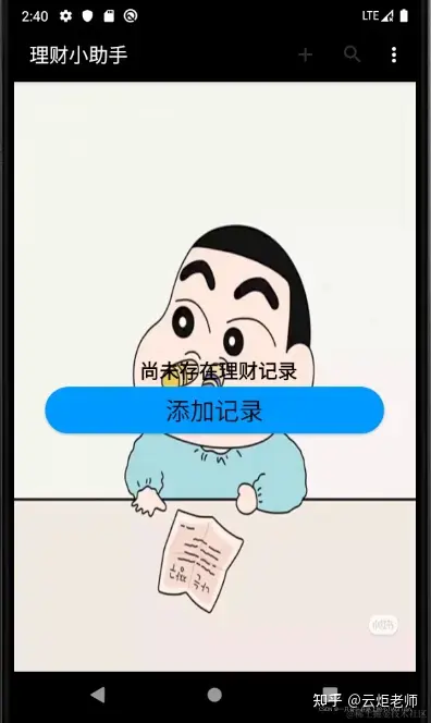 3:进入理财app先进入理财记录的首页:(此时还没有添加一条记录,首页显示为空)