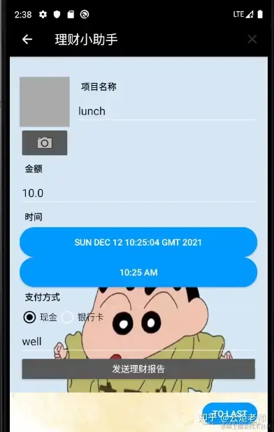 4:添加一条消费记录,消费主体是lunch,消费金额是12,消费感受是good