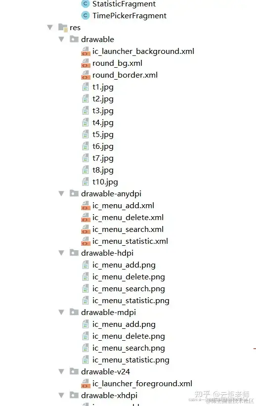 2:res文件夹里面包括的是图片和前端代码,包括button或者布局等,是安卓必须掌握的基础知识点。
