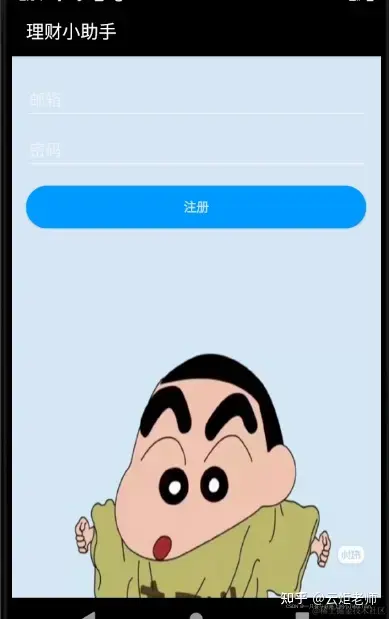 1:进入理财小助手app时会有一个登陆界面,包括邮箱和密码,邮箱和密码都有限制,如邮箱必须带有@符号,而密码必须不少于特定位数。