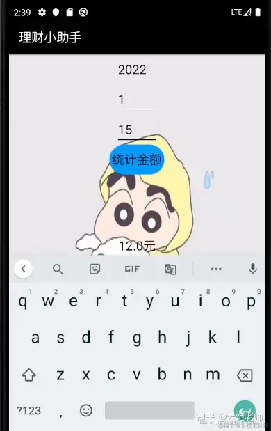 7:查看第五个步骤可以发现第五个步骤的图像右上方有三个符号,第一个+符号是添加一条记录,第二个符号是查找消息记录,第三个符号是可以统计金钱总额也可以显示出所有的消费记录: