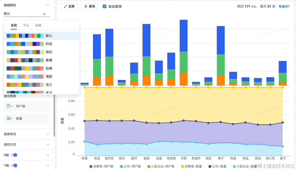 需要将查询结果对外展示的时候,需要给用户提供不同的主题来满足不同场景的美化需求。