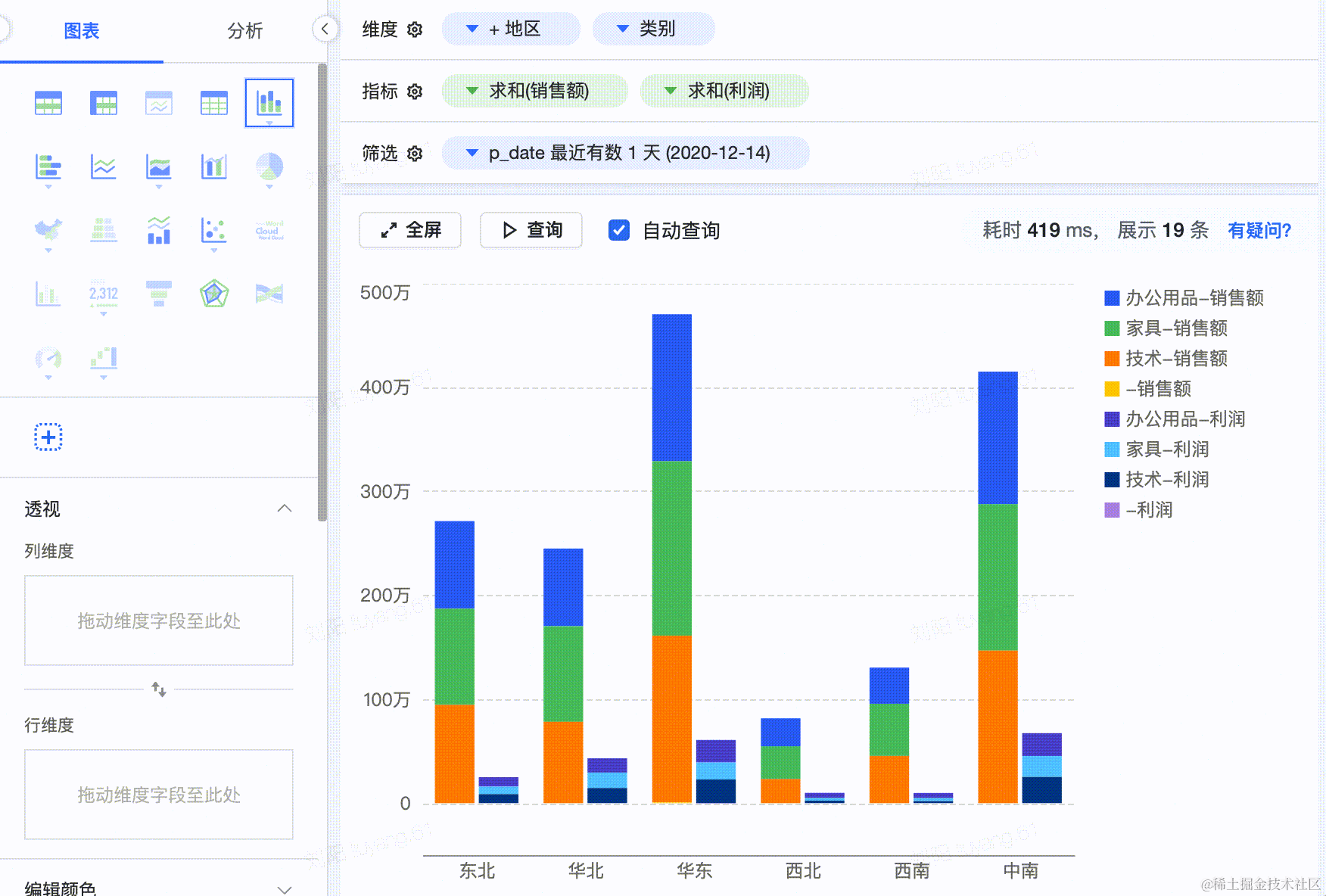 - 单图表渲染性能, 在100 毫秒内出图。透视图表, 可以渲染上千个图表, 而没有卡顿。