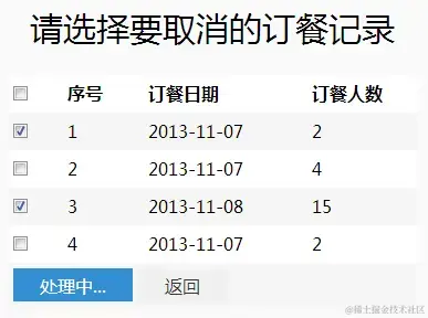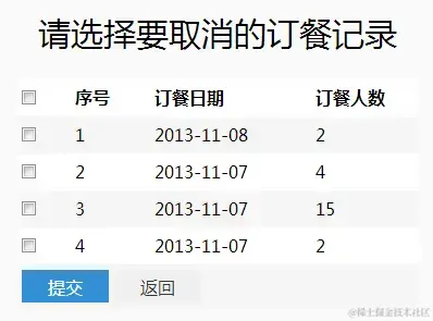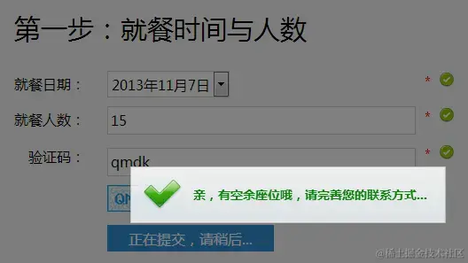 需要说明的是,“就餐日期”中的日期选项是页面加载期间调用availableDinnerDate计算出的正确可订餐日期,这样控制了用户的可出错范围。