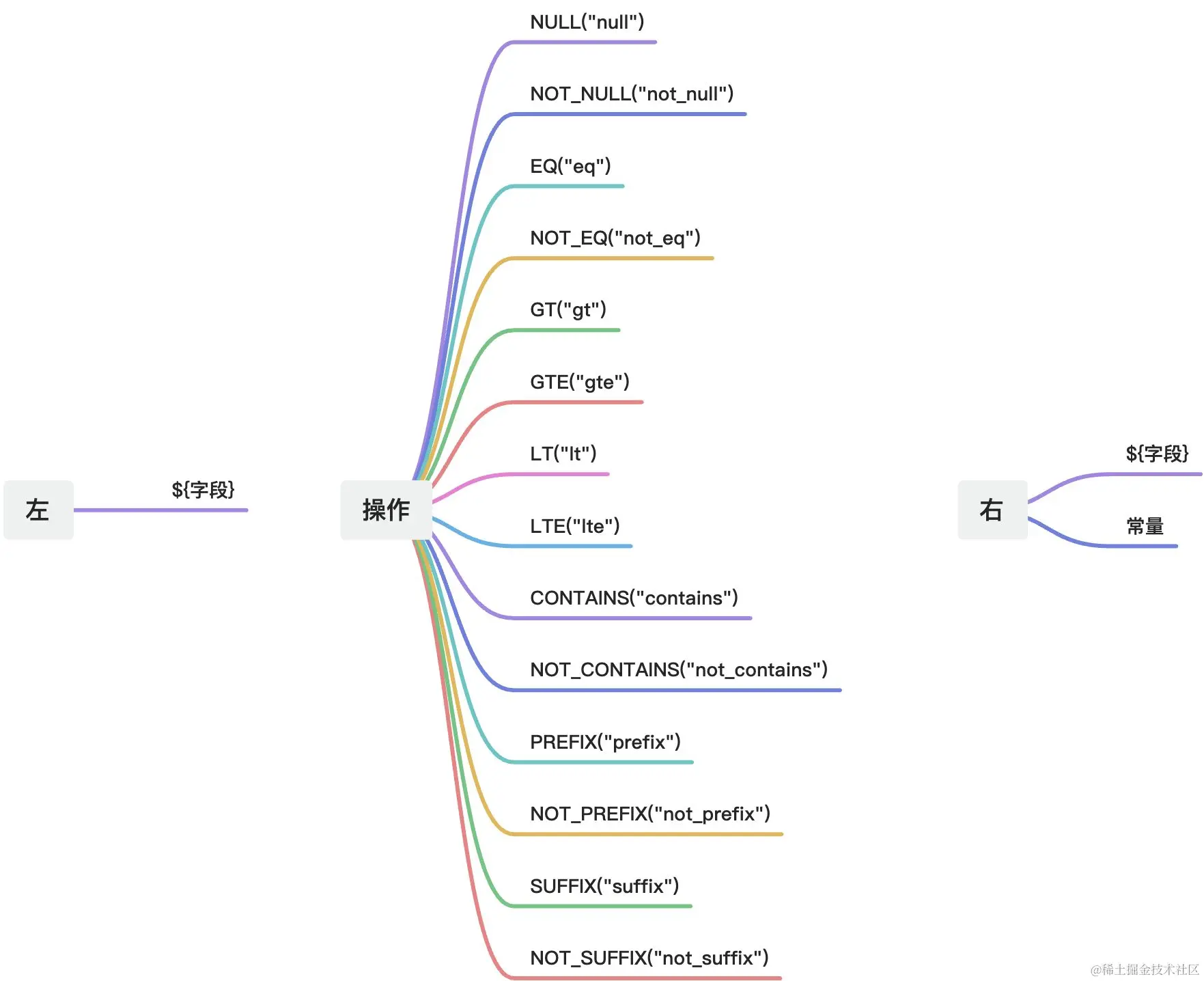 以上基本梳理了通用的规则条件,可以了解到,所有条件无非是boolean condition(left, operate, right);函数。
