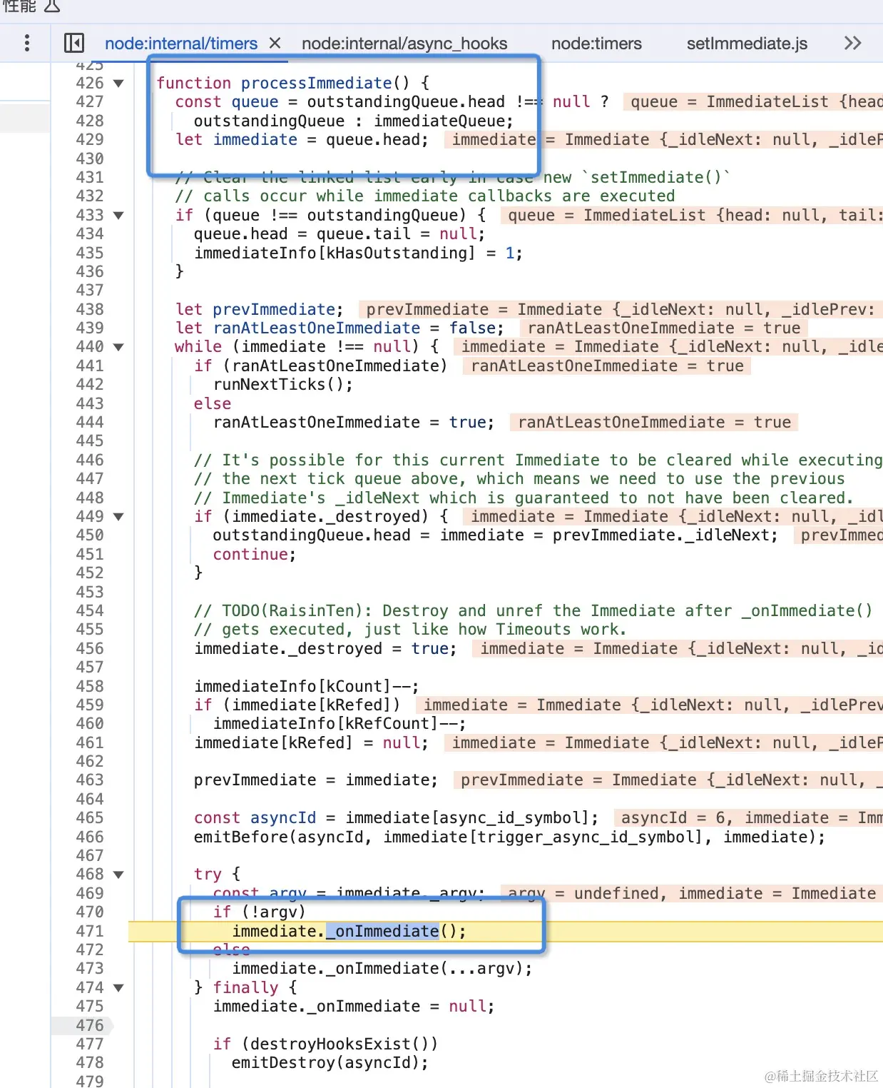 processTicksAndRejections(),它里面也执行process.nextTime(), 也会跑微任务runMicrotasks()