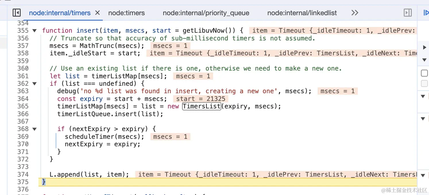 调试整个insert(timeout, timeout._idleTimeout)过程: