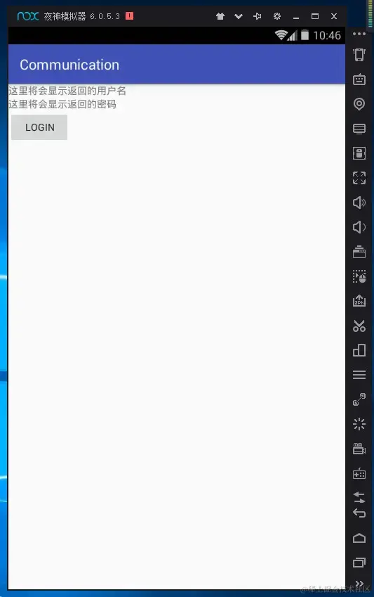 设计一个主Activity和一个子Activity(Sub-Activity),使用主Activity上的按钮启动子Activity,并将子Activity的一些信息返回给主Activity,并显示在主Activity上,亦可以自己设计界面和场景,也可以使用下面提供的内容。主Activity界面上有一个“登录”按钮和一个用了显示信息的TextView,点击“登录”按钮后打开一个新的Activity,新Activity上面有输入用户名和密码的控件,在用户关闭这个Activity后,将用户输入的用户名和密码传递到主Activity,并显示在主Activity的TextView中。
