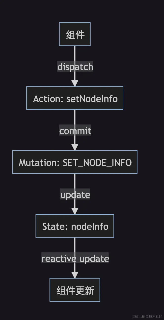 流转顺序: 以命名空间作为索引的整体数据结构, 可以以独立入口(mutations)的方式对 state 进行读取和操作。actions -> mutations -> state