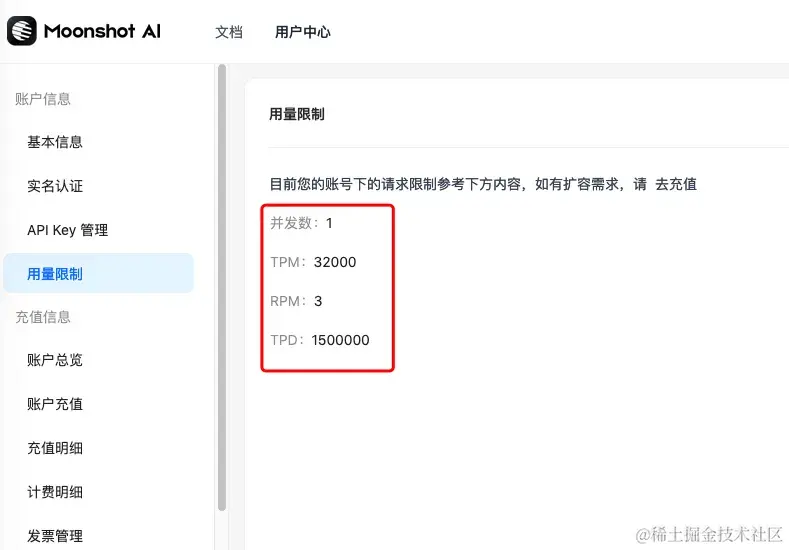 - Kimi API接口用量限制: