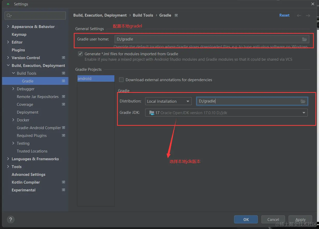 打开rn安卓目录需要配置本地gradel和jdk(配置一次)