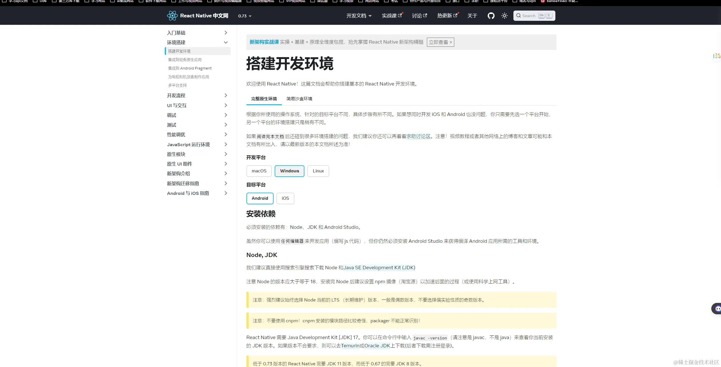 就拿当前最新的react navite版本0.73来说下载所需的版本环境和搭建