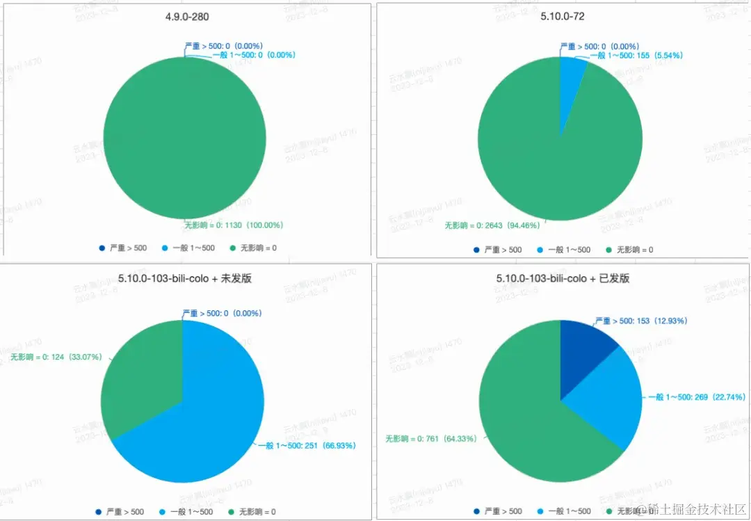 上图三个内核版本中,5.10.0-103-bili-colo内核为混部特性内核,基于该组线上数据的观察,可以得到以下结论: