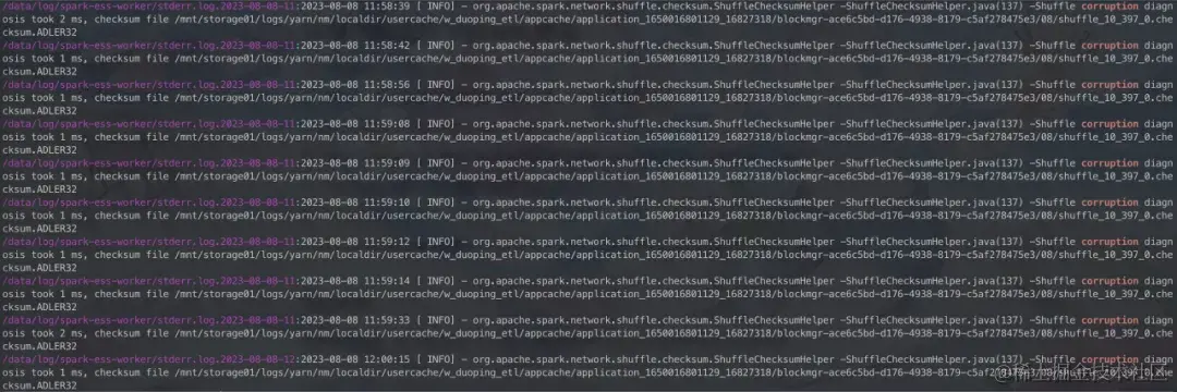 混部内核功能灰度测试发现,spark ess组件频繁触发shuffle corruption导致上层业务受影响,错误日志如下图。