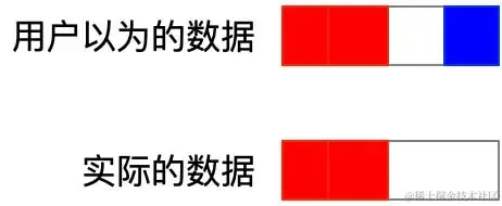 更进一步,App2会接着写入该文件,但pagecache中已不存在该页面,内核会重新分配一个新的内存页供App2继续写入,由于App2的IO上下文中维护了旧的文件磁盘映射关系(内核中称之为iomap),内核会将蓝色区域清空,继续写入红色数据,最终可能结果如下图。