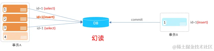 - 幻读:一个事务按照条件查询数据时,没有对应的数据行,但是在插入数据时,又发现这行数据 已经存在,好像出现了 "幻影"。