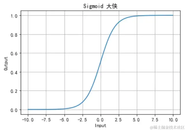 Sigmoid 函数将任意实数映射到 (0, 1) 之间,非常适合用于表示概率。