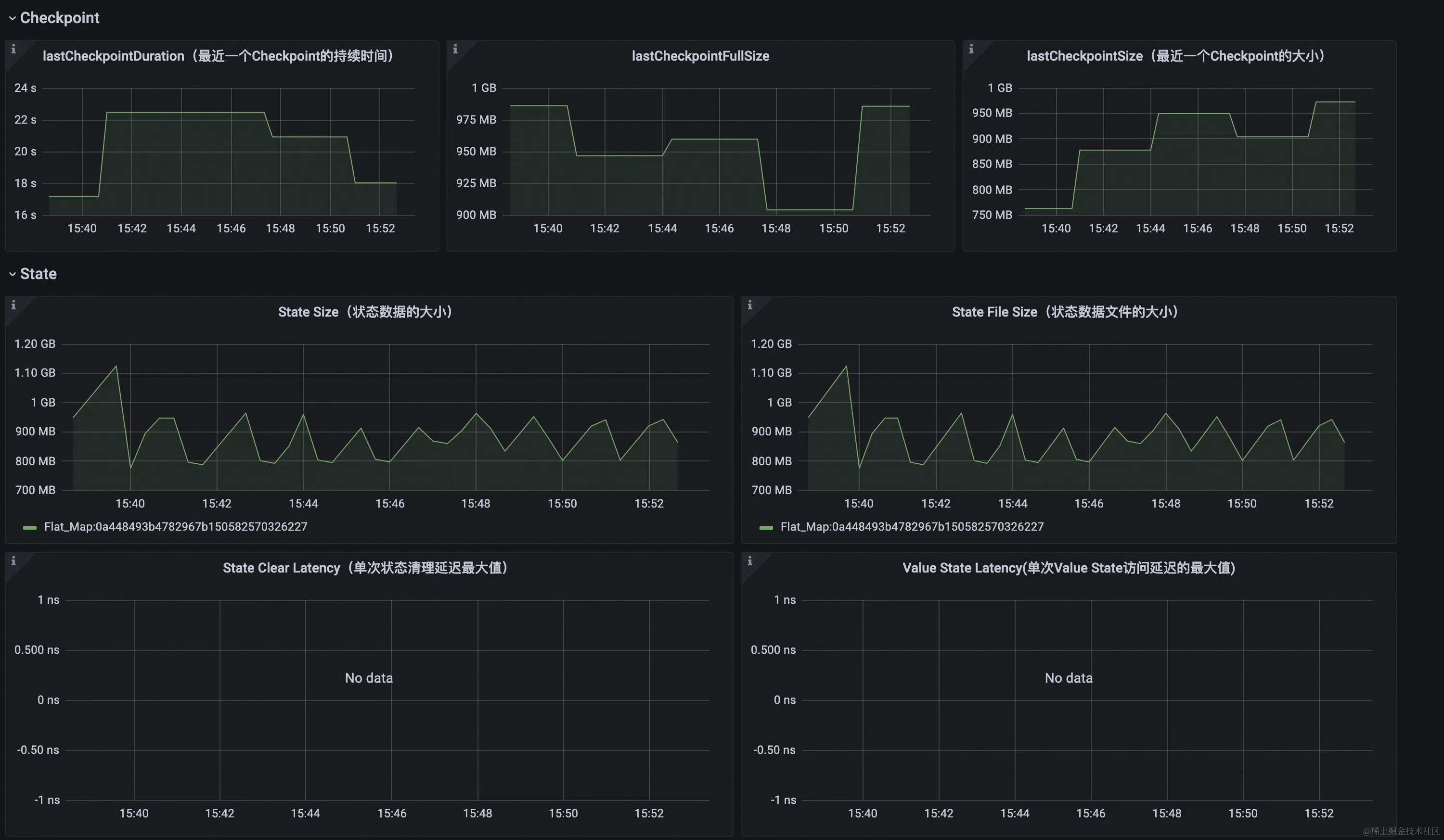 (2)可以在 State 和 Checkpoint 两部分观察上述的一些指标