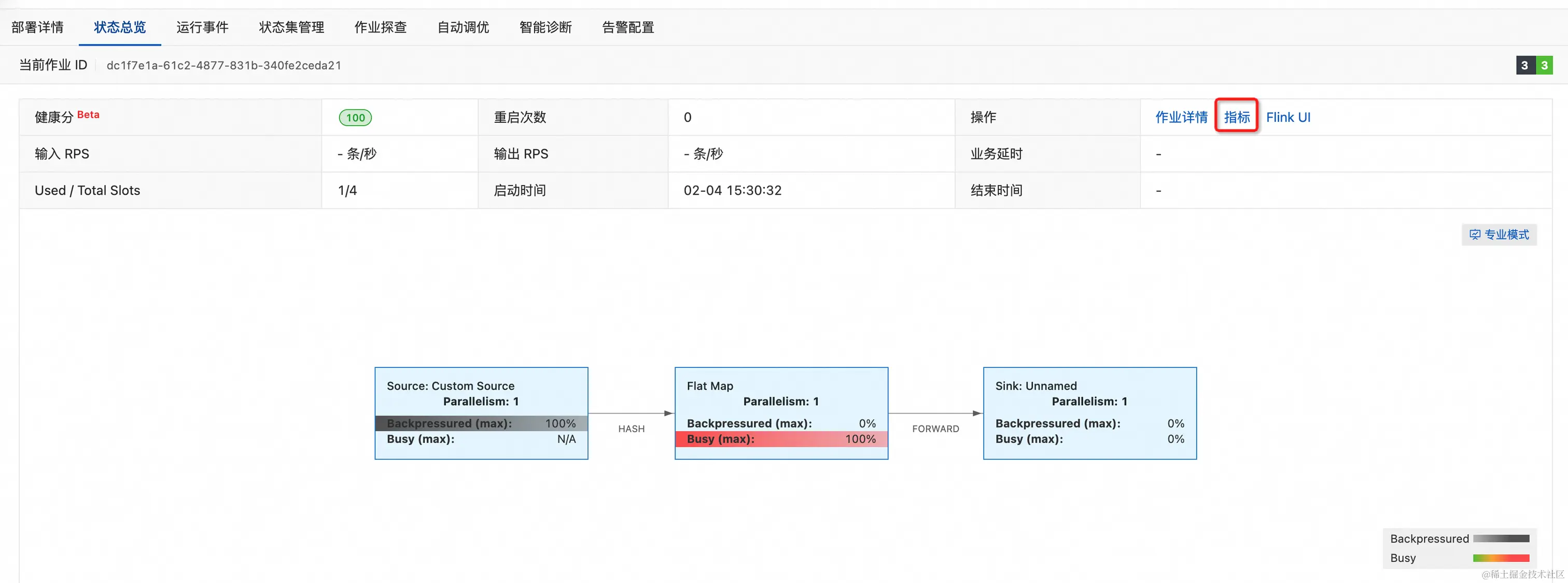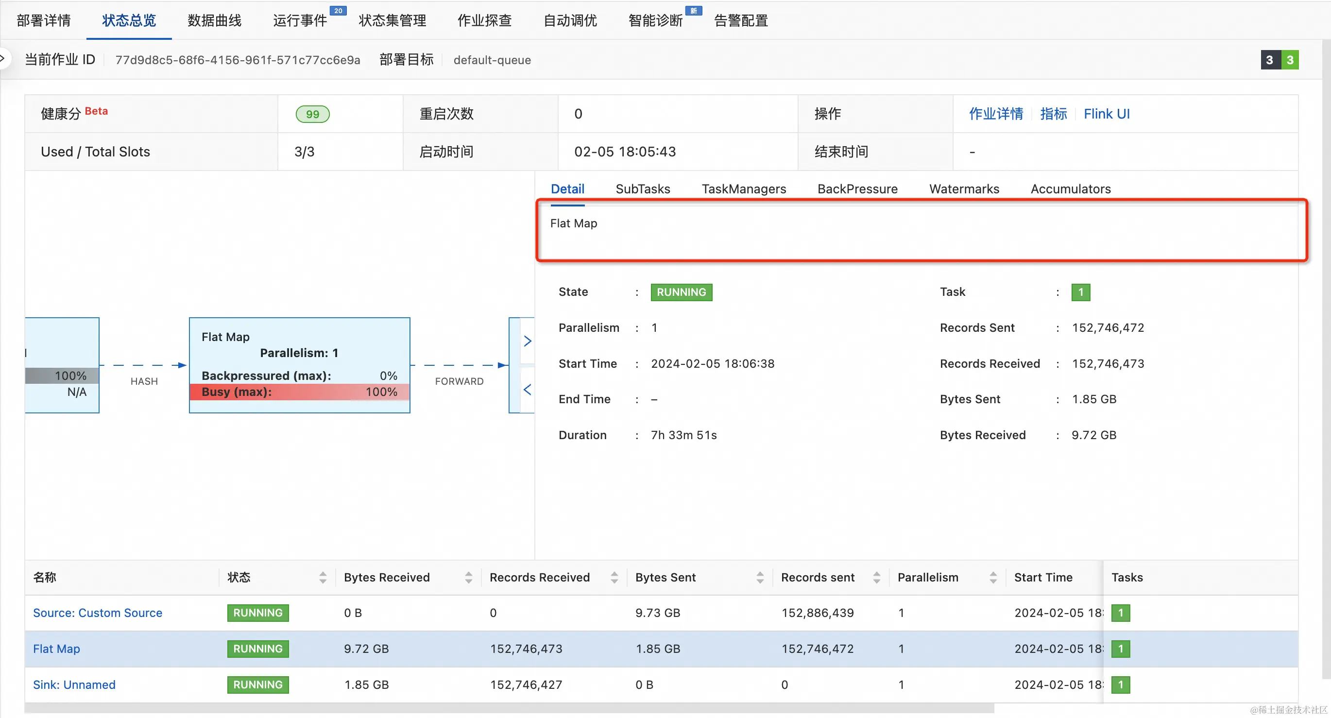 识别作业瓶颈:通过诊断工具结合具体业务产出情况,对作业目前的运行情况进行更为深入的了解,进而确定作业的性能瓶颈是否与状态管理有关。