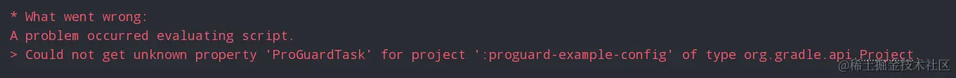 报错信息:Could not get unknown property 'ProGuardTask' for project ':proguard-example-config' of type org.gradle.api.Project