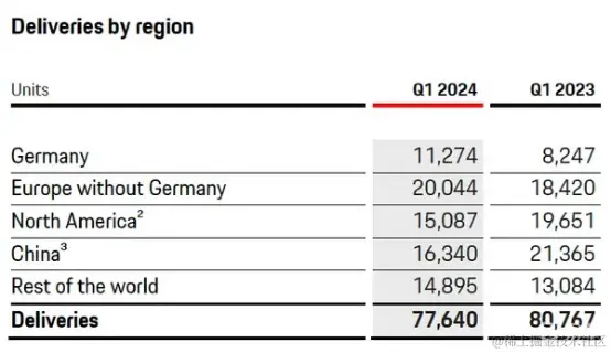 在今年一季度,保时捷在全球范围内销售了7.76万辆汽车,同比下降了3.9%,但中国区的销量却同比下降了24%。尽管保时捷在全球范围内保持了一定的销售水平,但中国市场的表现明显拖累了整体业绩。