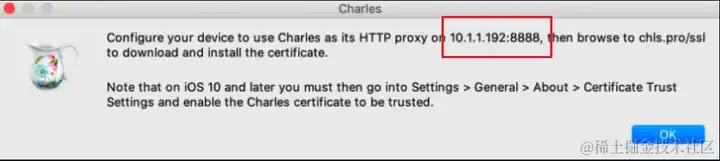 - 在 charles 中出现的弹窗中,点击 allow,这样 charles 代理就设置成功了。