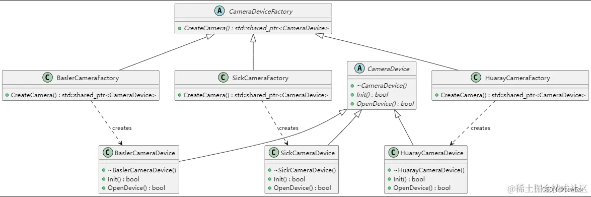 例如,在我的例子中,要根据连接到主机的相机来实例化相机对象,那么客户端(使用工厂方法创建实例的一方)使用工厂方法模式创建对象的时候,代码可能是这样: