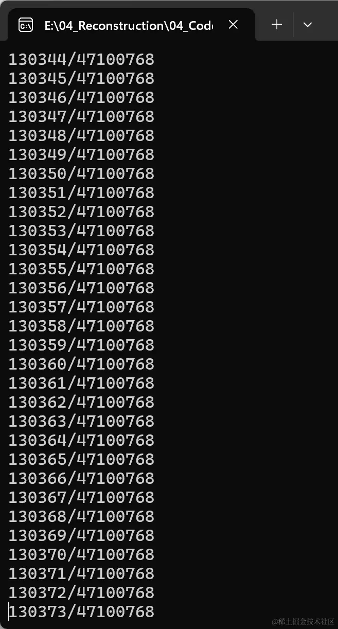 此时,再运行我这里的程序,就会发现原本的错误提示信息消失了;如下图所示,不再出现原本的错误提示信息,而是直接输出了代码的进度提示。