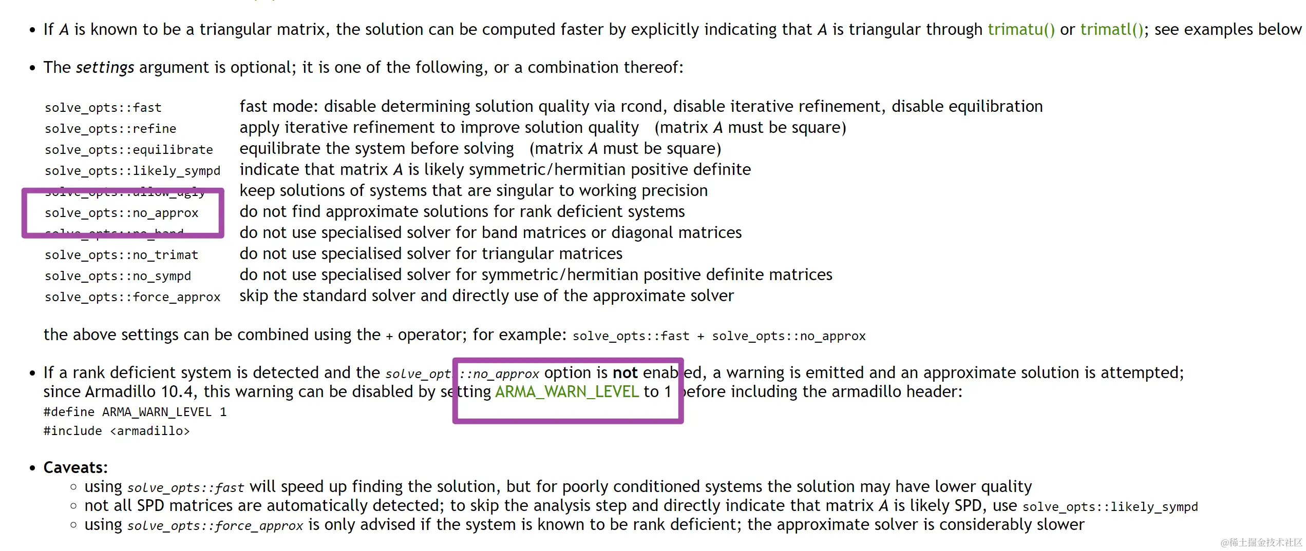 首先先看第一个思路。在Armadillo模块的官方网站中,提到了取消这个错误提示的方法,如下图所示。