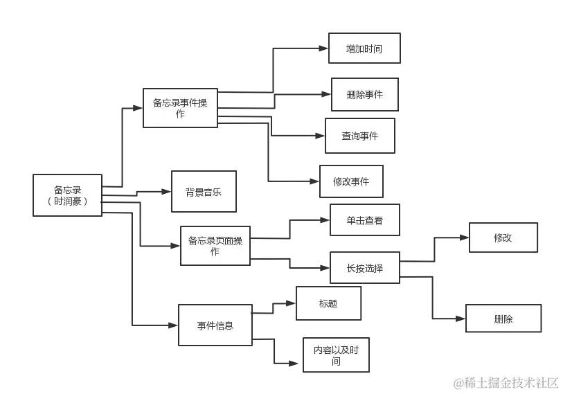 此次的备忘录项目的目的与初衷是可以开发出一款符合该产品的使用用户在工作和生活中可以方便轻松快捷使用的操作简单明了的应用,能够满足用户在记录事件与查询自己所记录过的事件的各方面需求,可以对备忘录中的事件进行增加、查看、修改和删除功能,其中事件的显示与排列可以选择纵向布局和横向布局,来根据不同人的使用习惯与需求进行不同的设置,其次加入了背景音乐,缓解使用用户的疲倦。要求功能完善丰富并且具有良好的用户界面和交互体验。