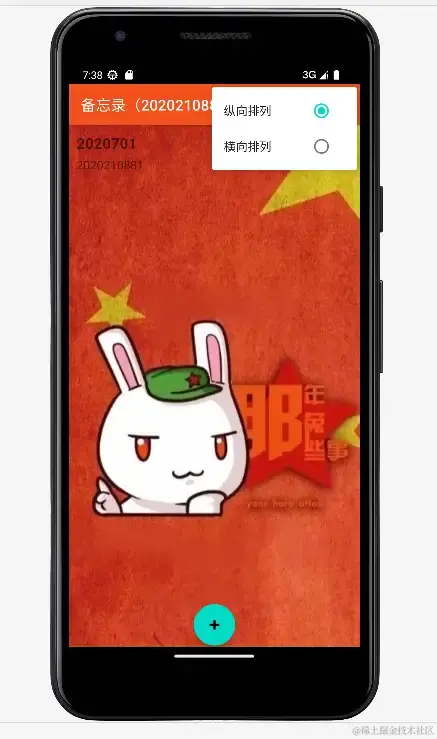 该界面包括右下角的添加按钮和右上角的查询按钮以及纵向布局与横向布局的排列布局切换按钮,备忘录主界面设计如下图所示。此外,我给该备忘录app设置了红色主题背景,如下图所示。一般的图片为jpg格式的,一定要把格式转化为png格式的。