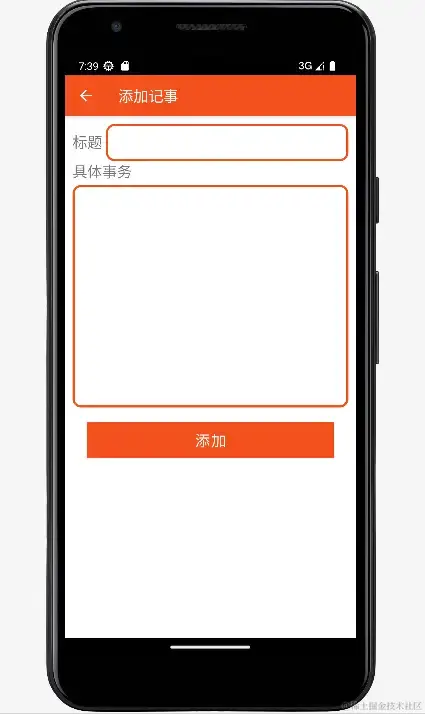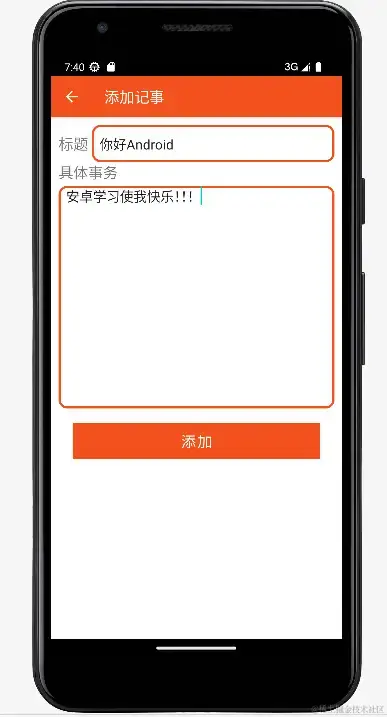 该界面主要包括添加记事的标题以及内容按钮。记事本添加记录事项如下图所示。