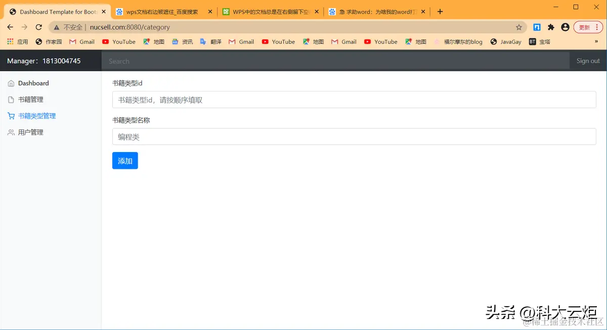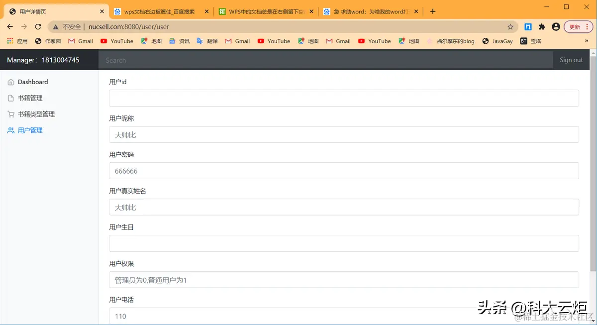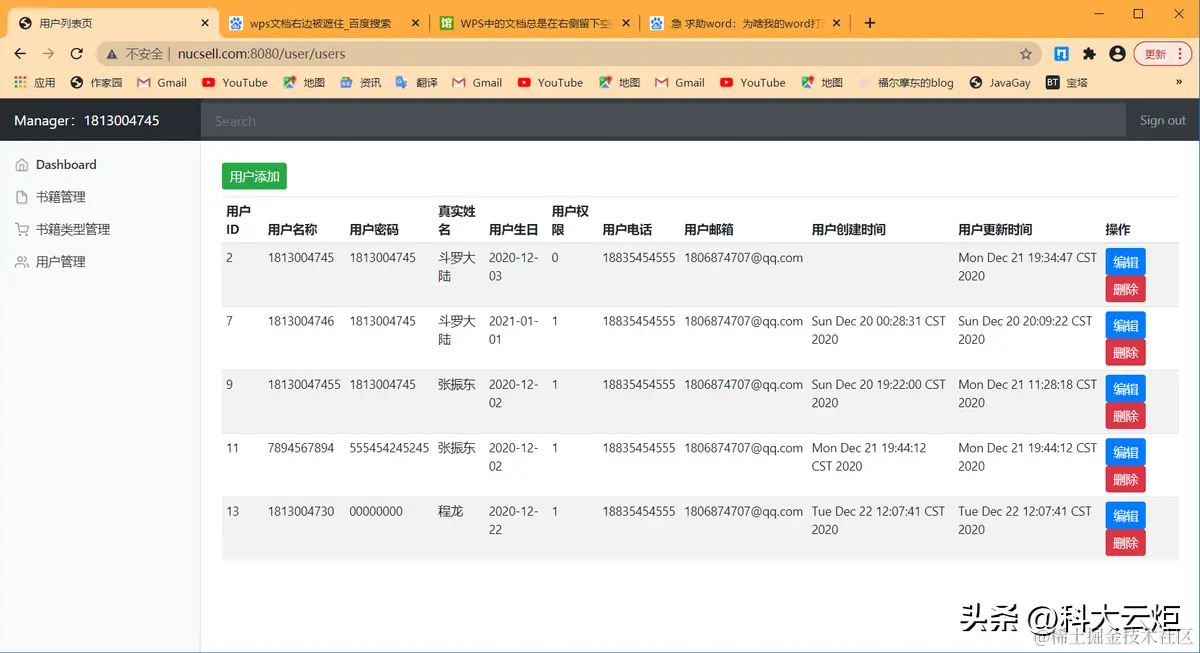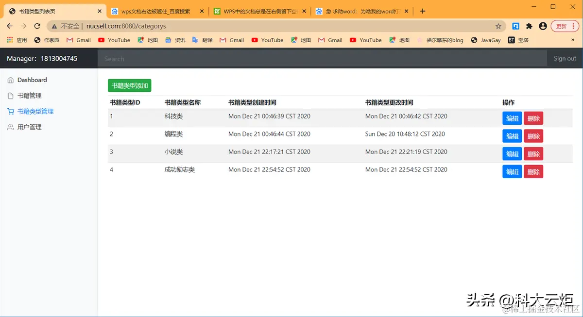 | 3.实验内容1.NUCSELL是一个图书网站2.用户可以登录,注册,查看分类书籍并查询3.管理员登录后可以在后台对图书进行增删改查4.管理员登录后可以在后台对图书类型进行增删改查5.管理员登录后可以在后台对用户进行增删改查6. 希望可以对此项目进行更多的优化和扩展本项目由18130Y03张振东独立开发,本项目基于IDEA进行开发,使用到了Swagger接口文档进行开发,使用Github进行协同开发,使用SpringBoot+BootStrapUI进行开发,数据库使用云端数据库进行搭建并开发,使用nginx进行反向代理(本项目域名为www.nucsell.com:8080),本项目曾使用docker部署到阿里云服务器上,基本使用Restful风格的接口,符合阿里巴巴开发规范。系统架构解读:整个系统可以分为两部分:后台管理系统,前台展示系统。后台管理:①对图书的管理:包括图书封面,图书类型,图书价格等信息的管理②对图书类型的管理:对多种类型的图书分类进行管理③对用户的管理:包括用户的类型,用户的姓名,生日等进行管理。后台系统采用SpringBoot+BootStrap进行开发,后台页面使用thymeleaf进行展示。预览图: | |||