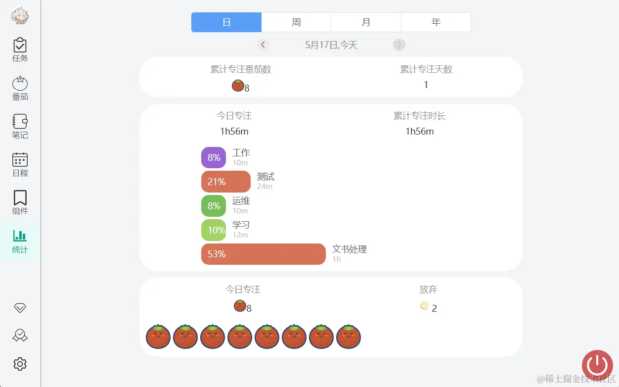 - 在移动端类似于番茄 todo 的应用程序有不少,从用户量来看还算可以。