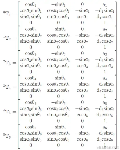 标准型的D-H参数其乘积顺序为:
