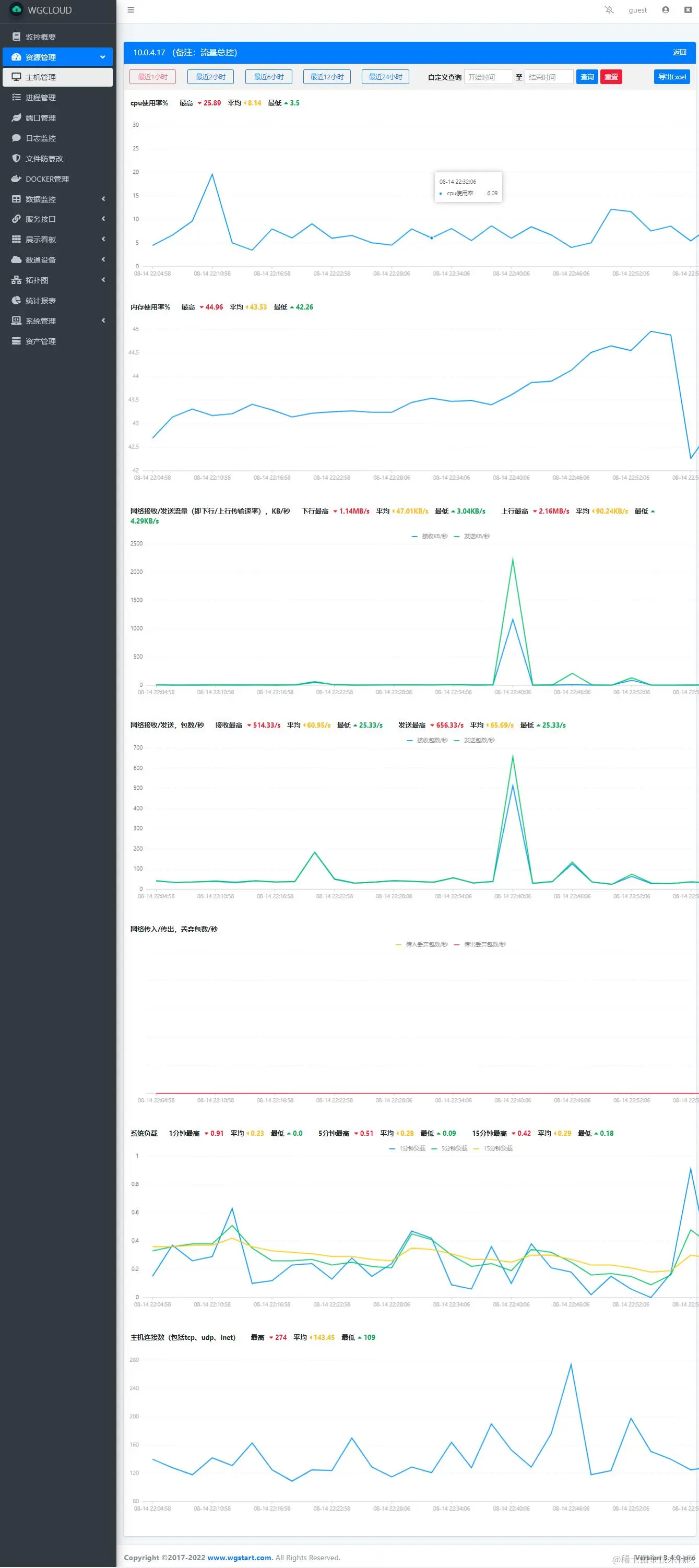 WGCLOUD是一款免费开源的运维监控软件,轻量高效,部署方便,上手简单,界面简单流畅