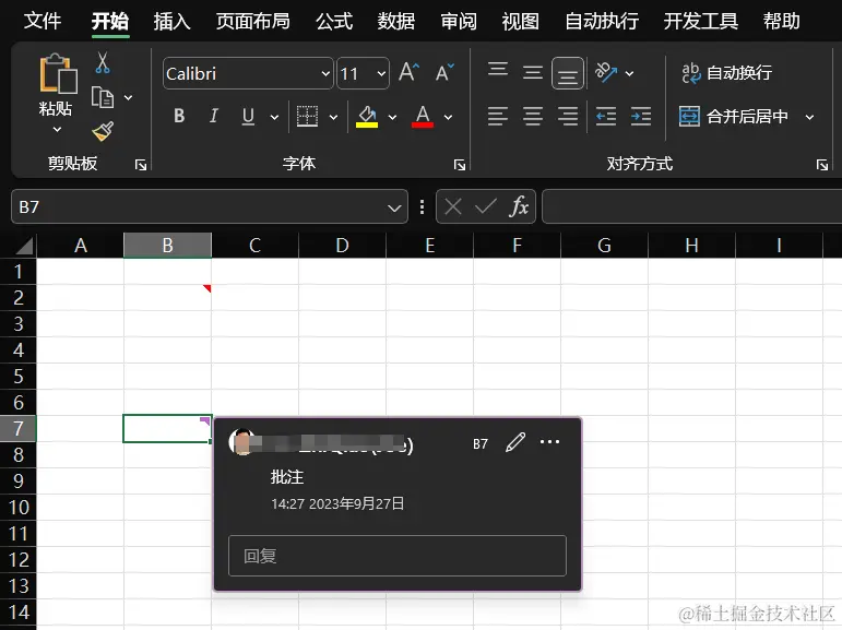 删除后,则 comment 的红色角标也不会出现,整个 sheet 为空,不做截图演示。