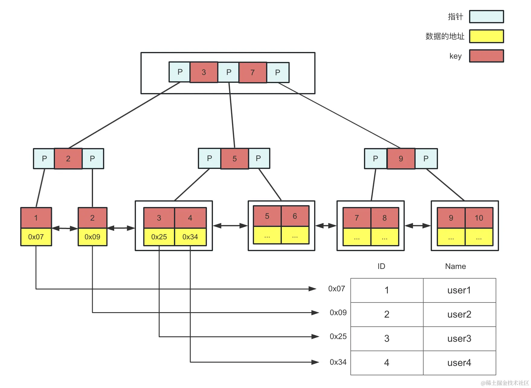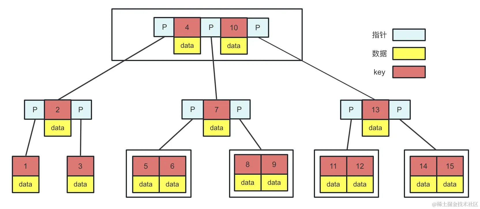 B树也是一个平衡多叉树,结构如图: