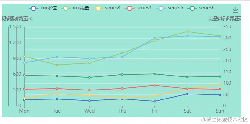 第一步就是给我们的表格添加6条y轴。方法很简单,只要将yAxis设置为一个数组,在其中添加6个y轴对象即可。