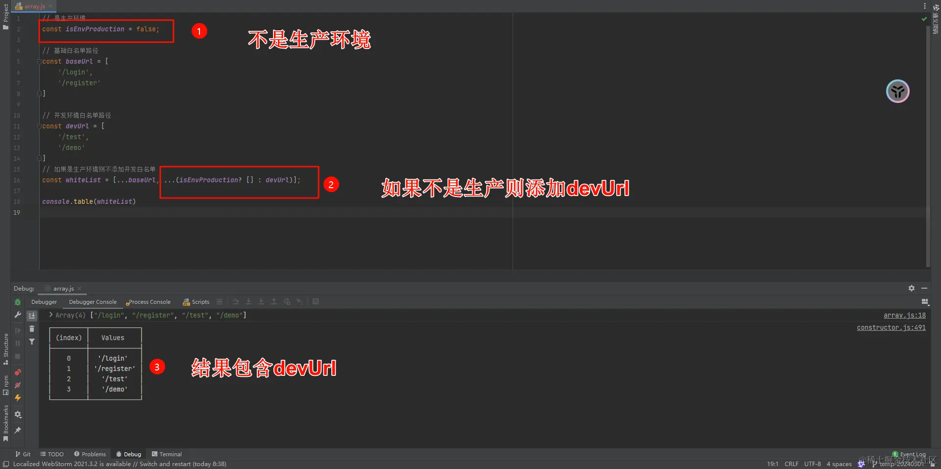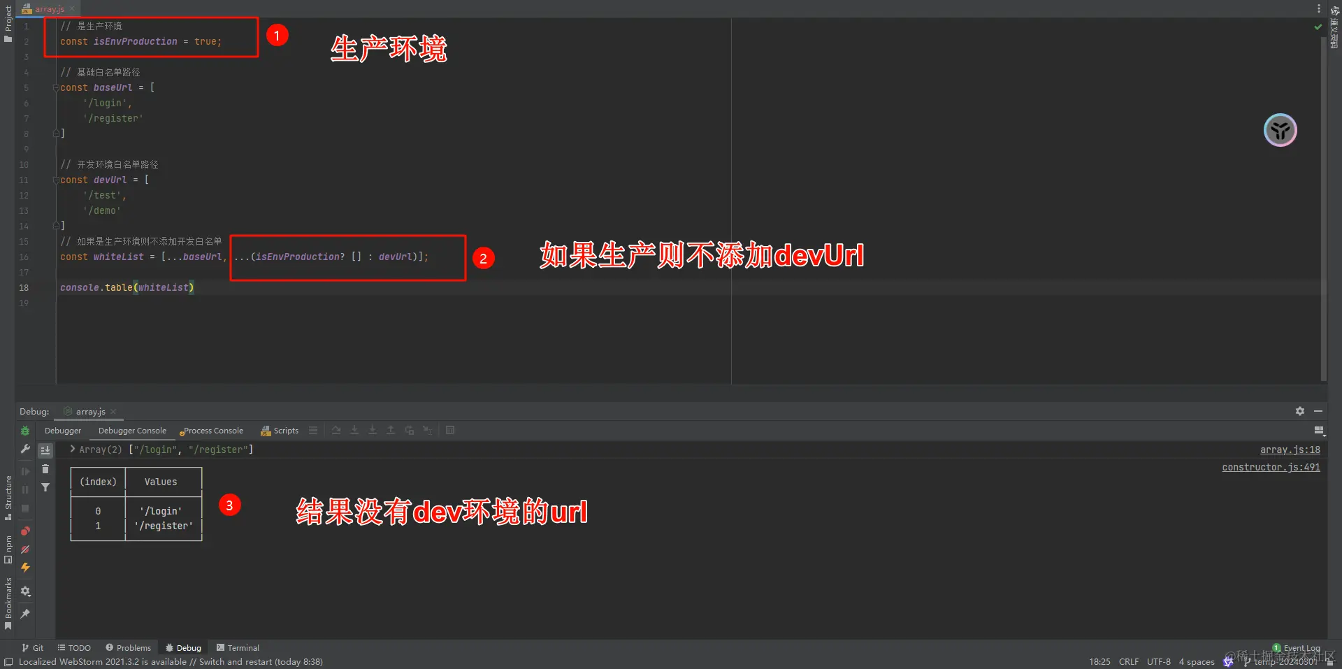 const whiteList = [...baseUrl, ...(isEnvProduction? [] : devUrl)];
