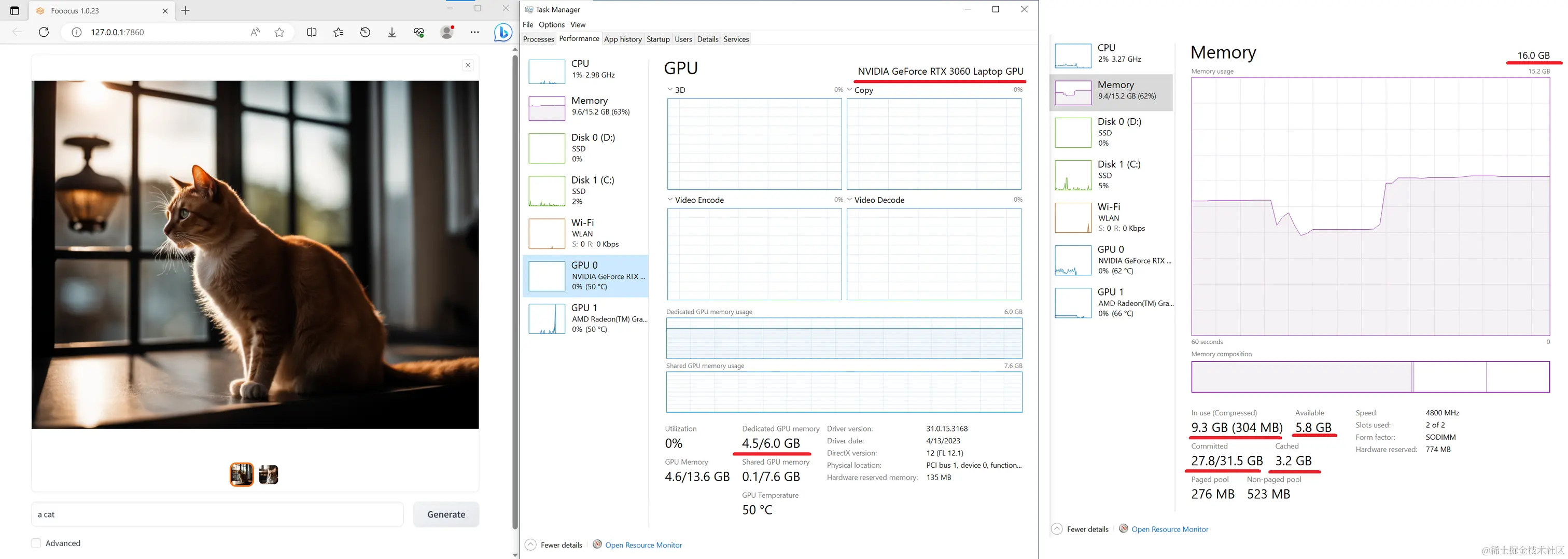下面是在一台具有16GB 系统 RAM和6GB VRAM的相对低端笔记本电脑(Nvidia 3060 笔记本电脑)上进行的测试。这台机器上的速度约为每次迭代 1.35 秒。相当令人印象深刻——如今配备 3060 的笔记本电脑通常价格非常可接受。