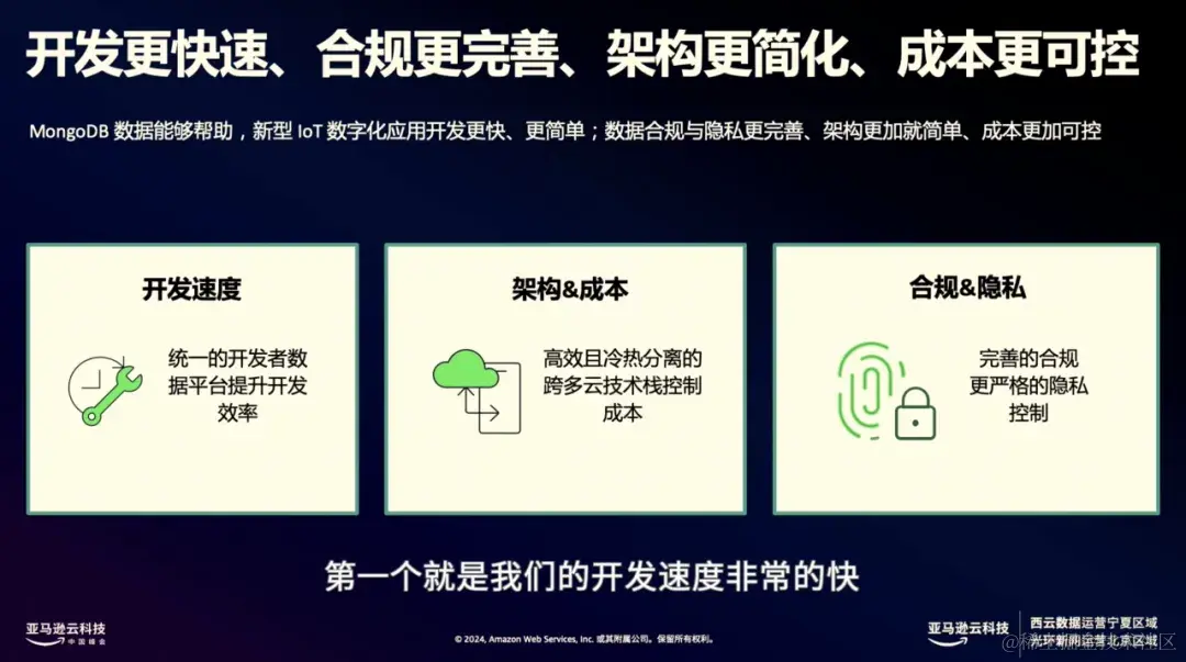 为什么众多企业都选择使用 MongoDB 来构建智能制造的应用平台,特别是选择采用部署在亚马逊云科技上的 Atlas (MongoDB托管服务)呢?主要有三个原因: