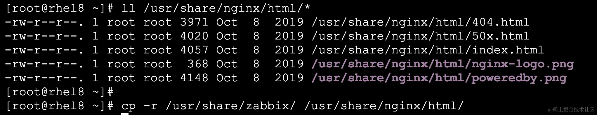 cp -r /usr/share/zabbix/ /usr/share/nginx/html/