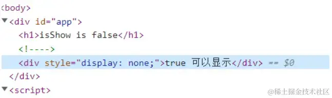 - 表达式为false时,元素从dom树种移除