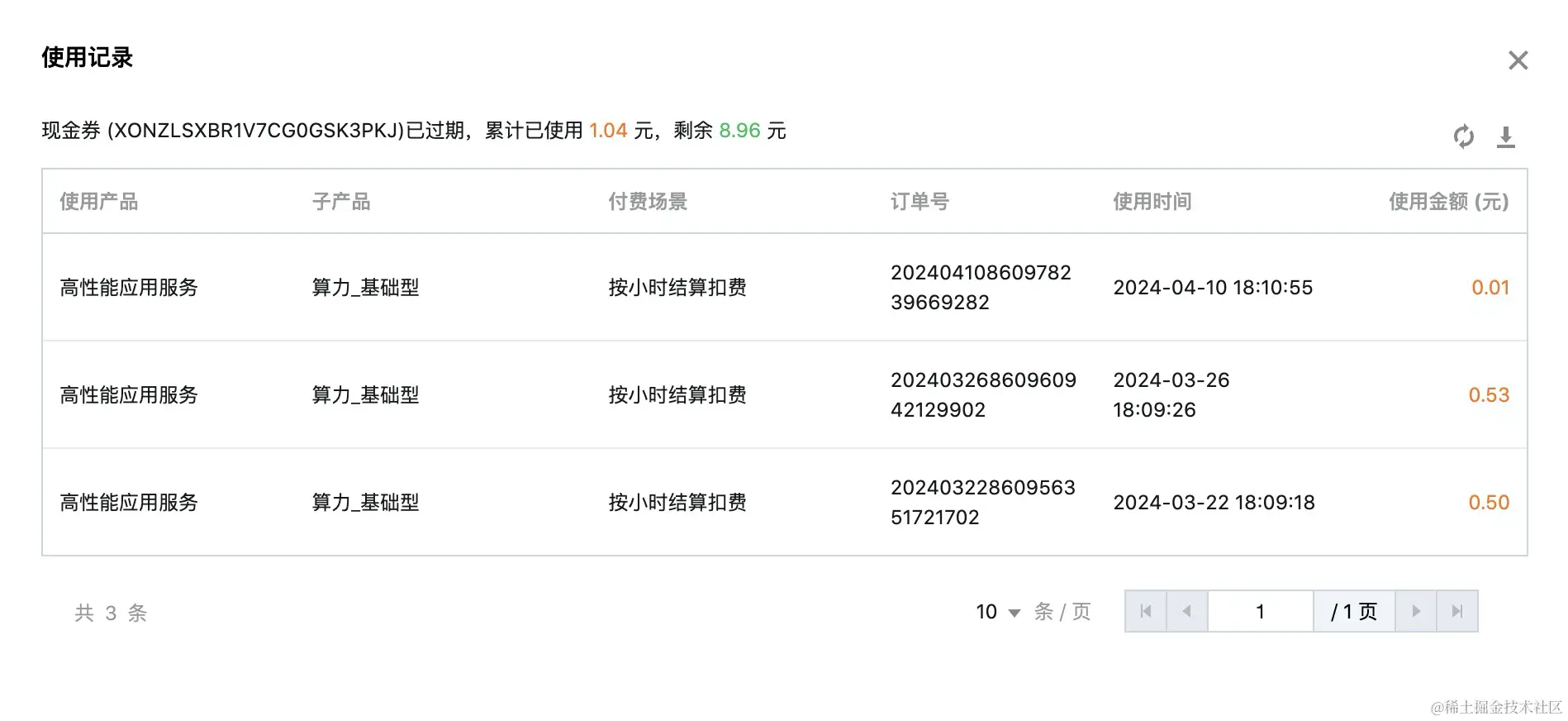 我在购买了HAI现金券之后,在费用中心的优惠管理页面,就可以看到我的使用记录。我在使用完stable diffusion就会关机,所以每次消耗的金额也就几毛钱。