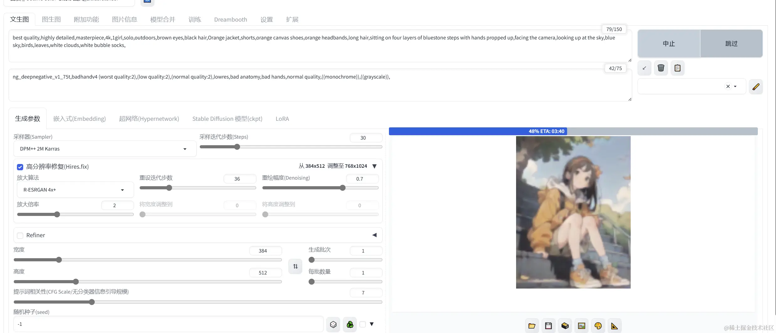 往往为了生成高清质量的图片,需要使用高清修复功能Hires. fix来提升图片分辨率,所以在渲染4K图片时,我就陷入了漫长的等待。