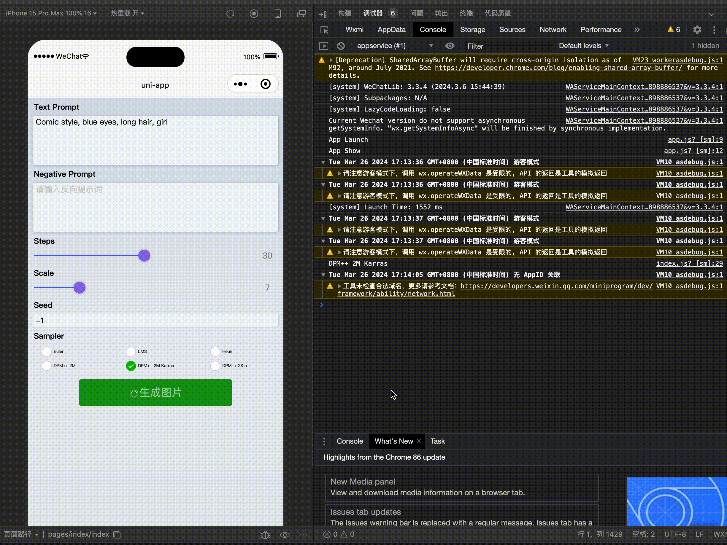 通过API接口调用HAI,需要在JupyterLab中,通过命令来开启接口服务。在之前HAI的实践文章自学微信小程序开发两小时,我将hai的AI绘画接入到了小程序中,有具体的操作步骤。我通过HAI提供的接口,将stable diffusion的文生图功能接入到了微信小程序中。