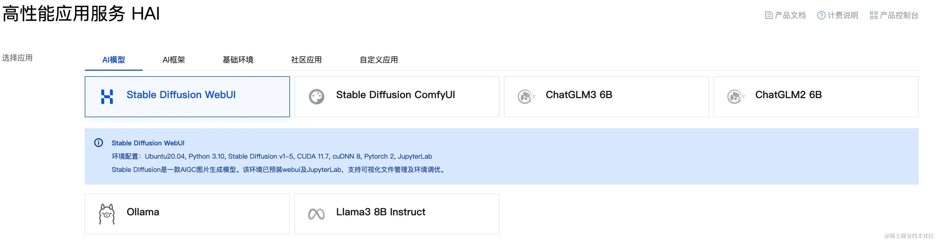 如果我们选择普通的GPU云服务器,想要AI绘画还需要自己安装部署python、cuda和stable diffuion等环境,而HAI直接在创建实例时,可以选择自己需要的开发环境进行安装,真正做到了开箱即用。