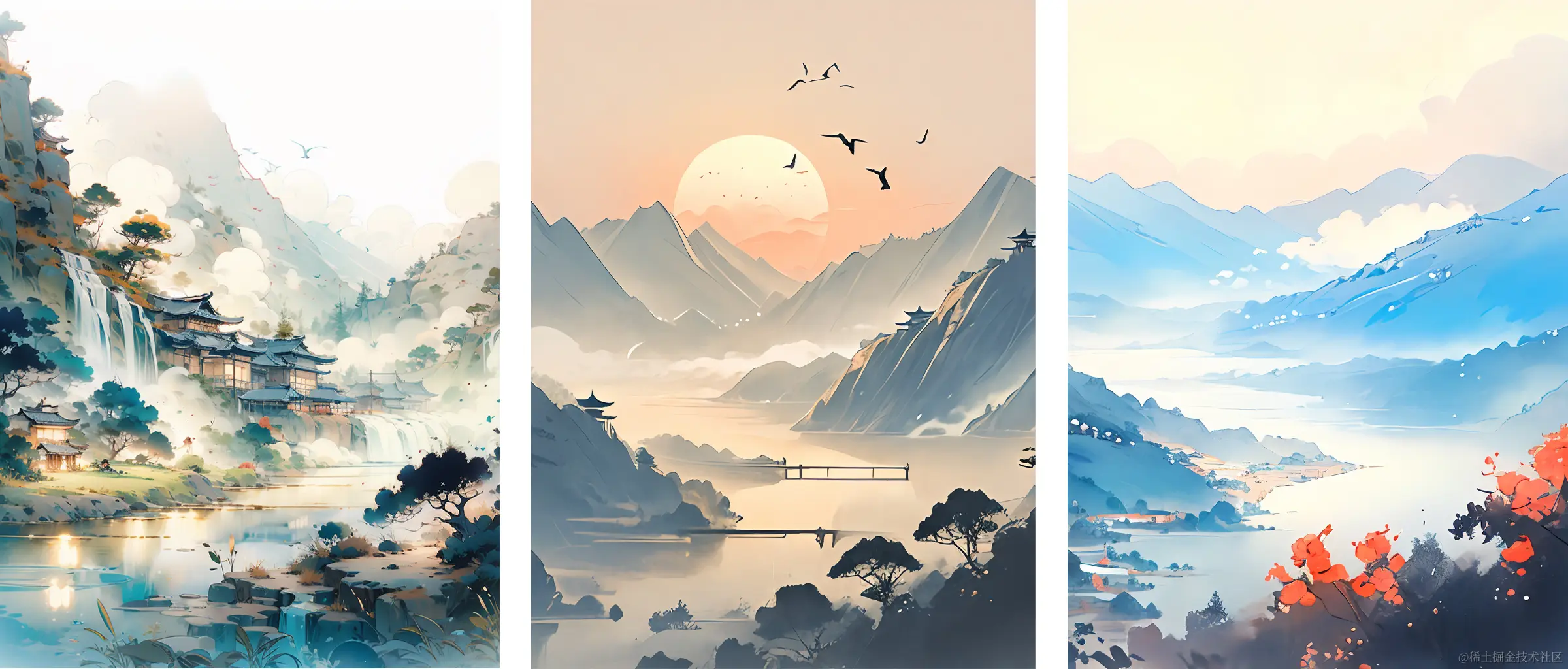 中式水彩插画