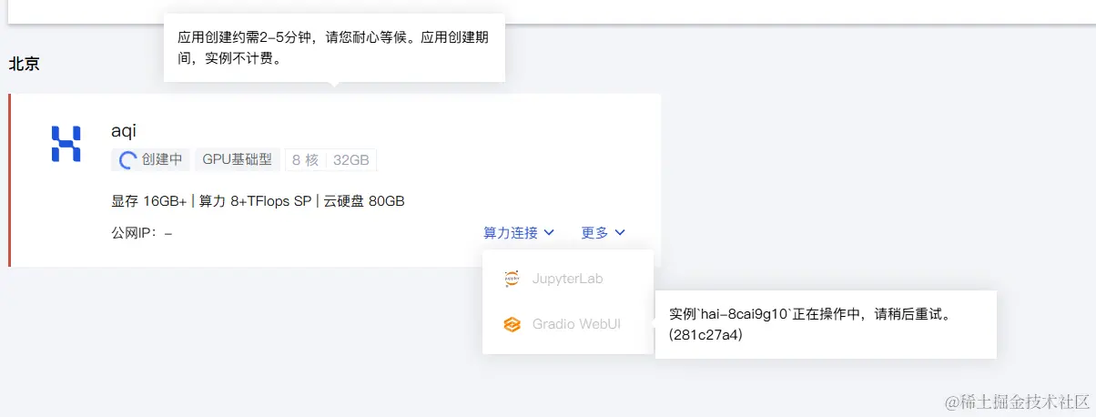 基础型的显存就16GB,已经可以满足日常需求了,而价格仅仅1.2元/小时。最重要的是,选择套餐创建好实例,在使用完之后,只要关机,它就不再计费,而且实例和数据都不销毁,再次使用只要启动即可。